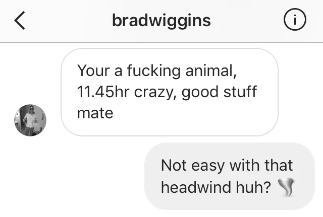 Sir Bradley rode M2L that year too. His acknowledgment at the finish is the kind of thing you carry quietly for a long time.