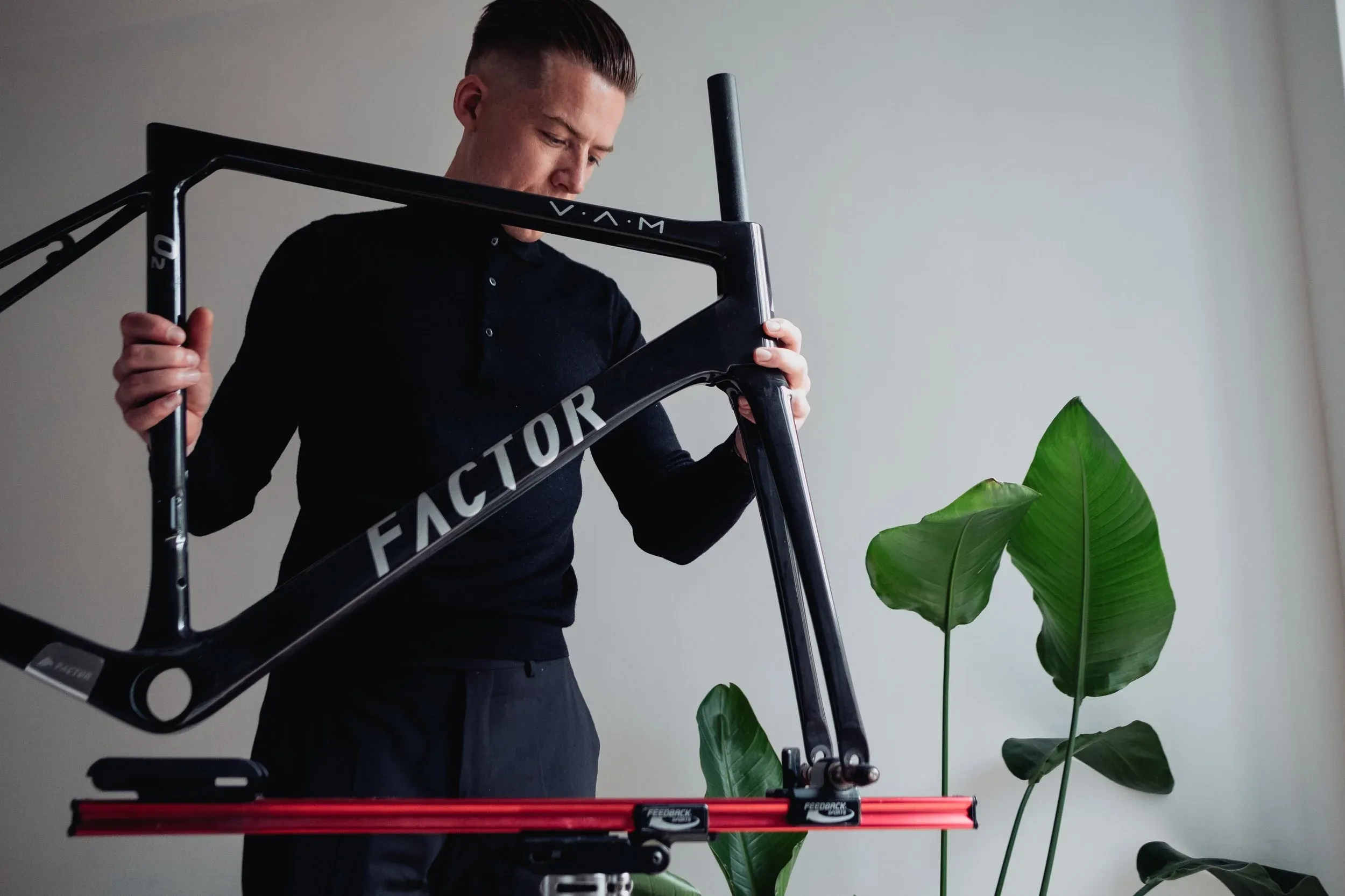 I collected my Factor O2 VAM frameset from Vires Velo at Via with a very small window to build it. Miss that window and it would become a half-built clothes horse covered in damp babygrows. Building a bike of this calibre sleep-deprived is a recipe for disaster. I would probably saw off a fork blade instead of the steerer tube, or use carbon gripper paste as bearing grease.