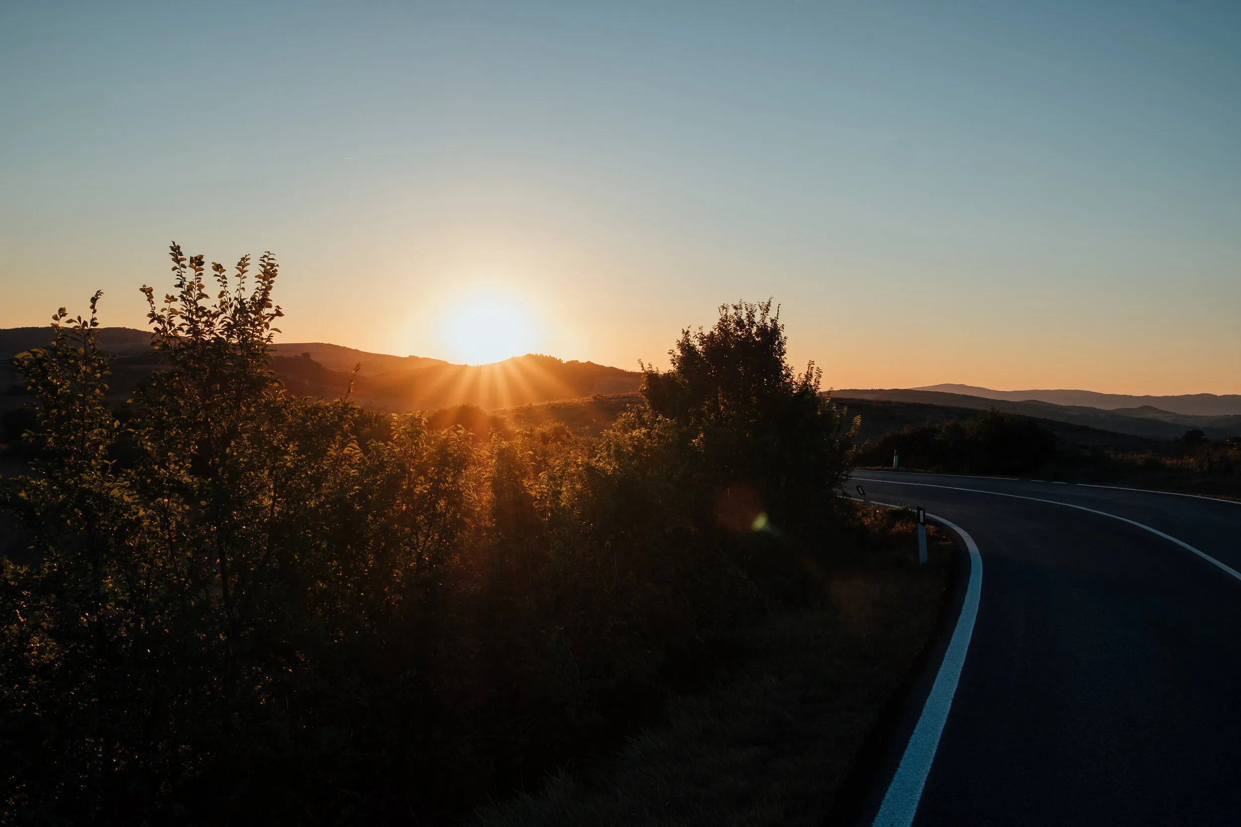 The road felt fast. I hid in the cool shadows of the mountain as the sun rose. Shards of light found the road between the hairpins. We played hide and seek on the way up.
