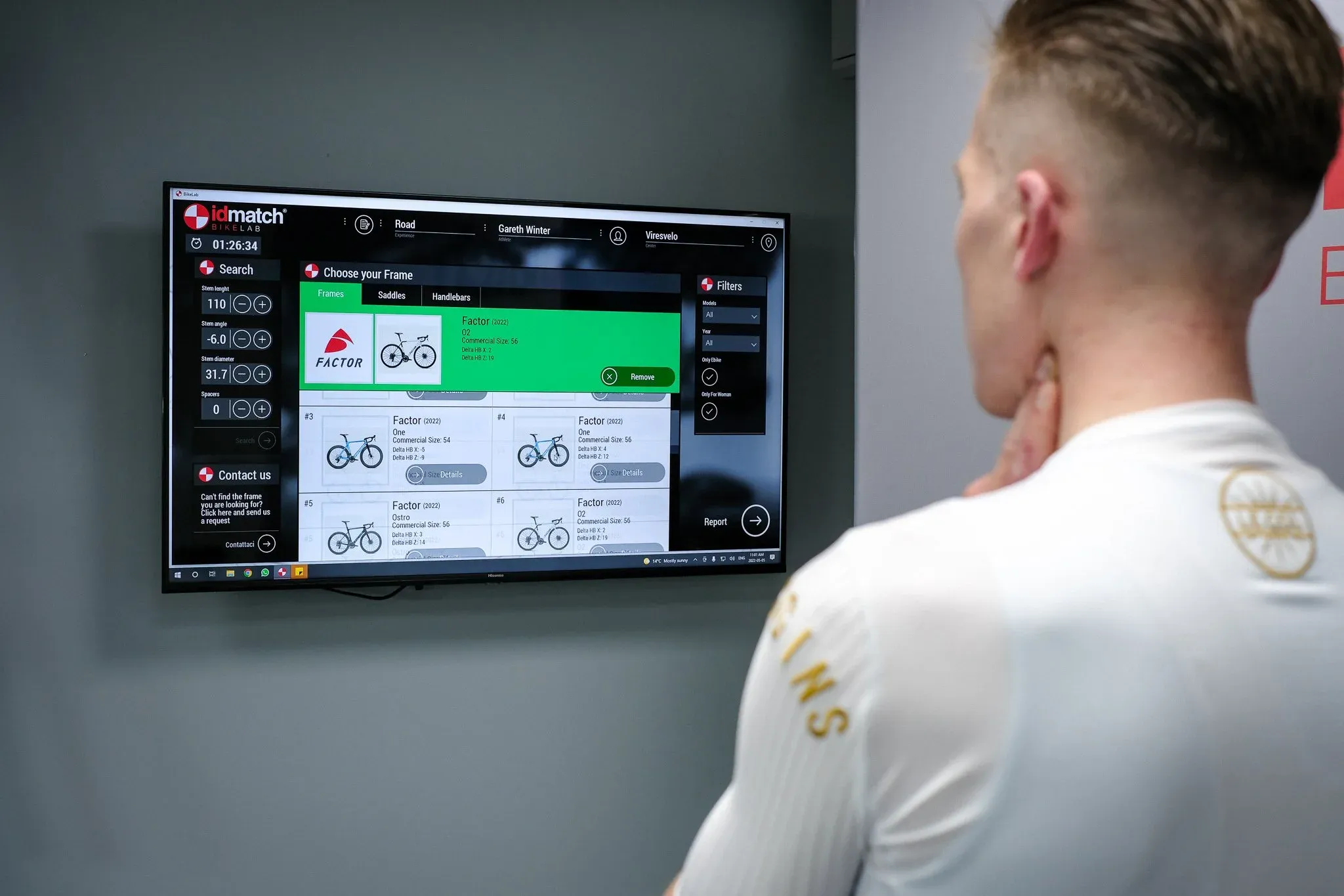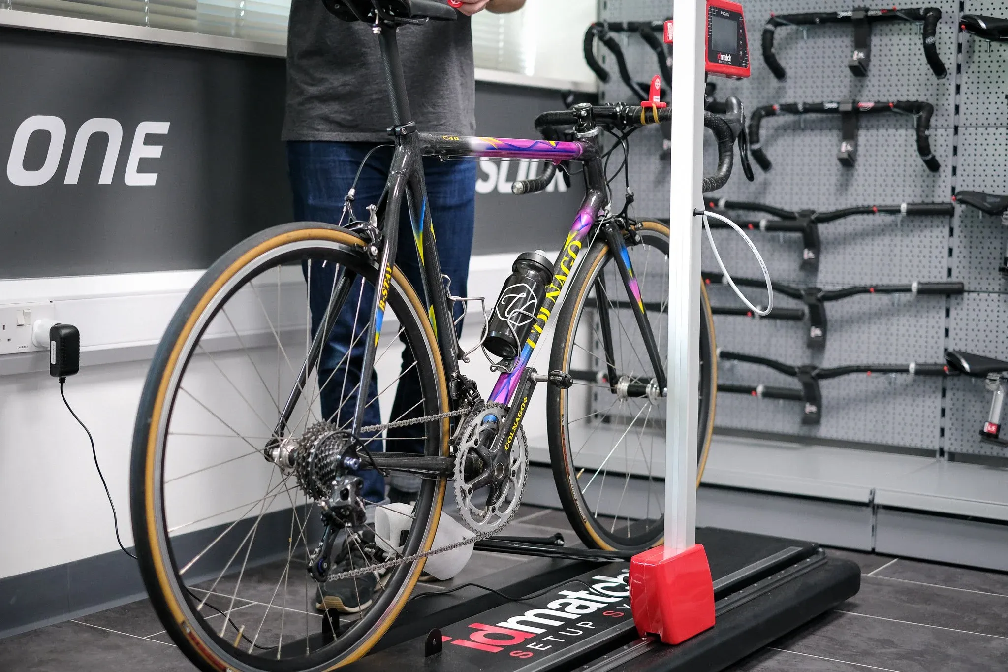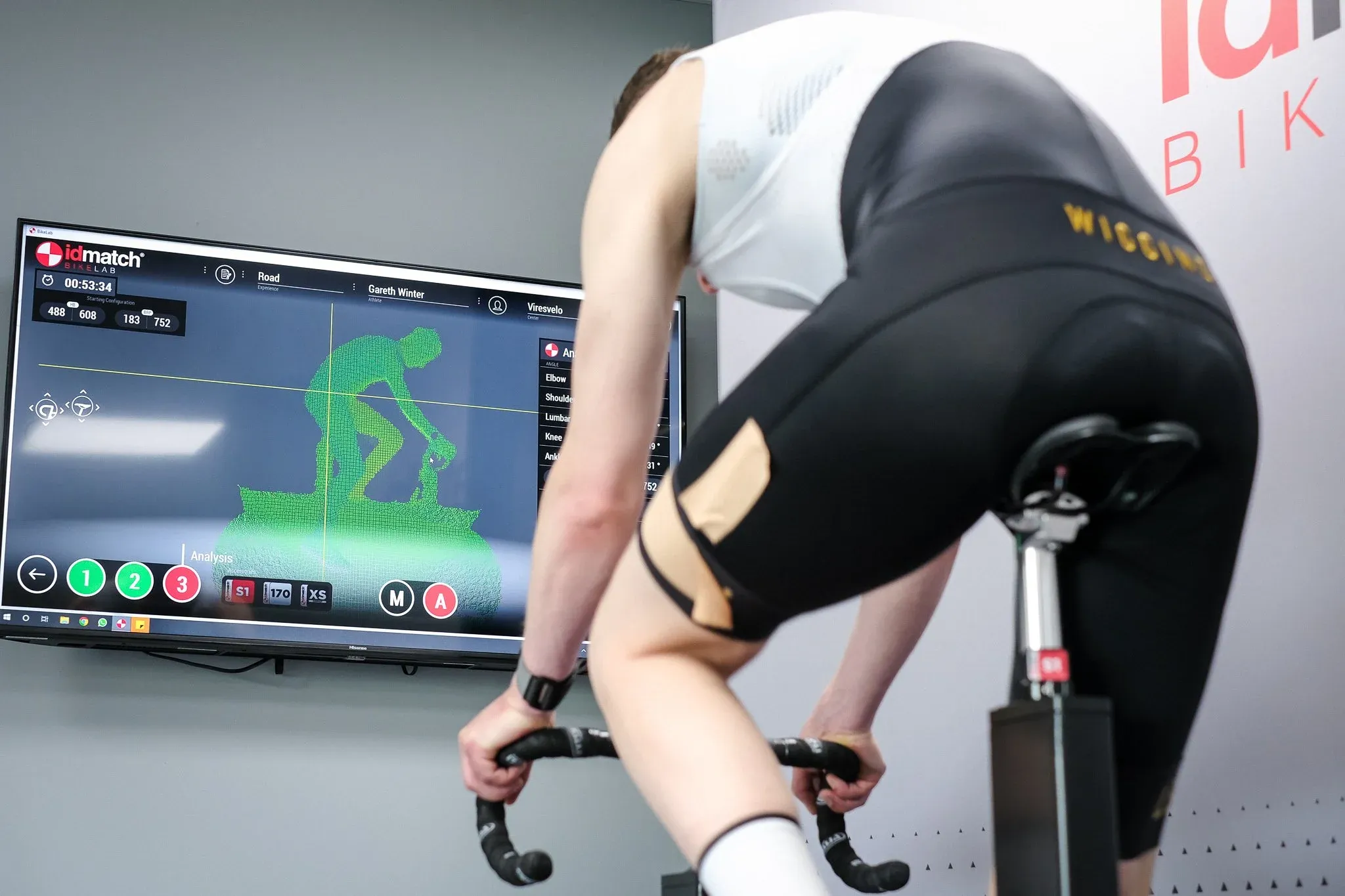 Vires Velo have invested in the idmatch system: a cutting-edge 3D body scanner that places markers across your body and runs algorithms to determine your optimal position based on your goals and riding style. Hayden set the idmatch smart bike to my existing fit and asked me to pedal while he watched.
